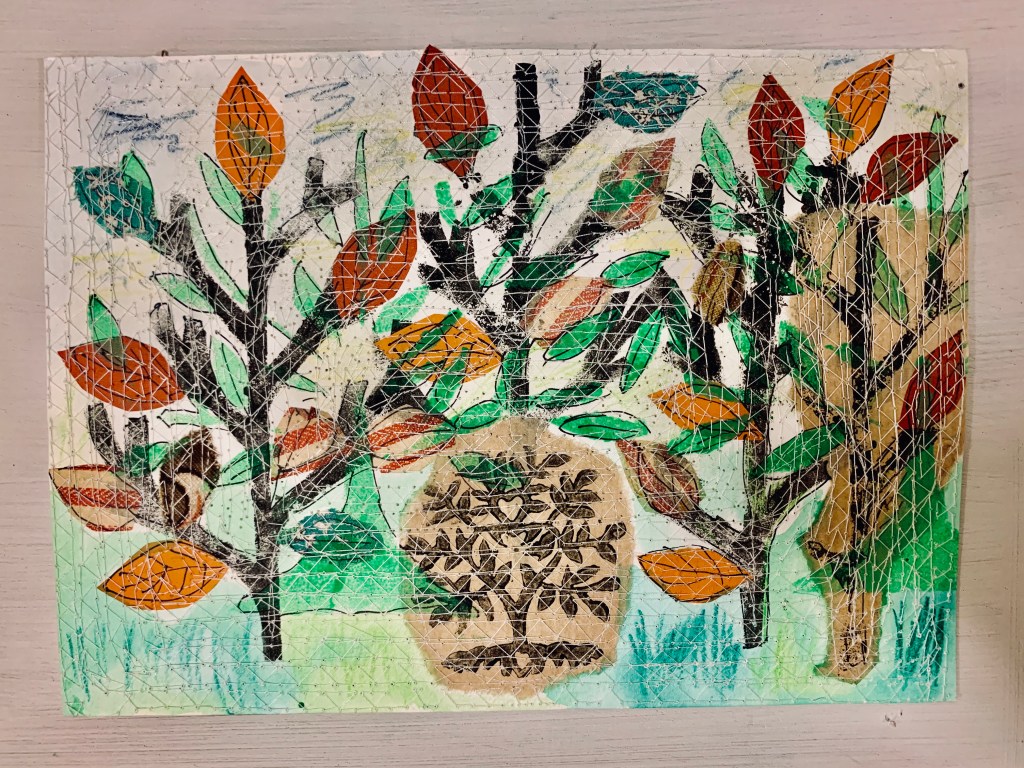 I have enjoyed experimenting with a range of print techniques lately to share in future classes – both online and hopefully in real life… You can see my classes with spaces for next year here.