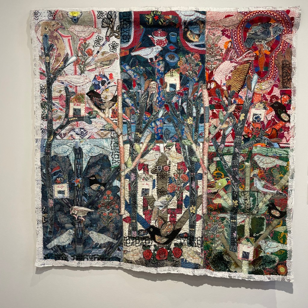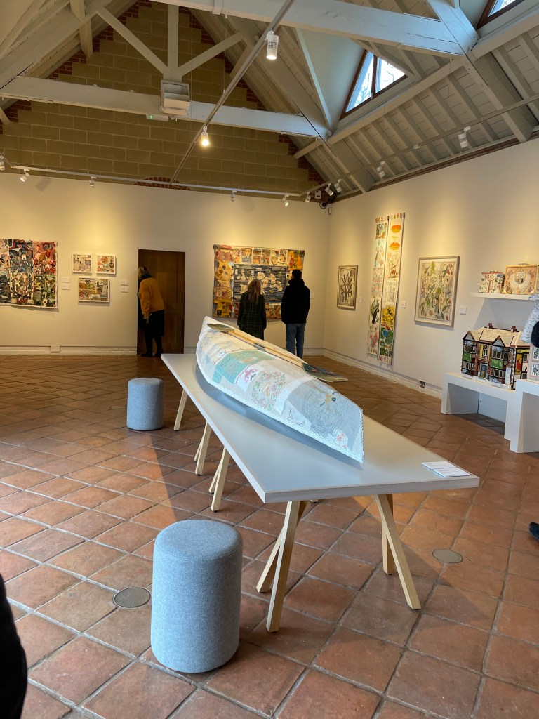 It has been been beautifully curated and is on until 12 March 2023. There is an upstairs drop in area ‘Patchworks of Places’ being set up for you to drop in and make a small piece of work for a community collaboration during the exhibition.
