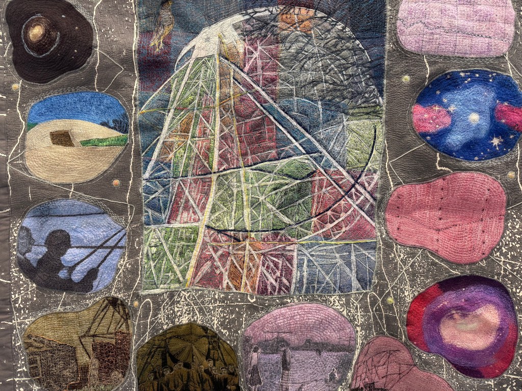 It was a great honour to be invited to make a piece for the 80th anniversary of Jodrell Bank. The finished mixed media embroidery includes hand and machine stitching, digital and block printing. It will be displayed in the First Light Centre.