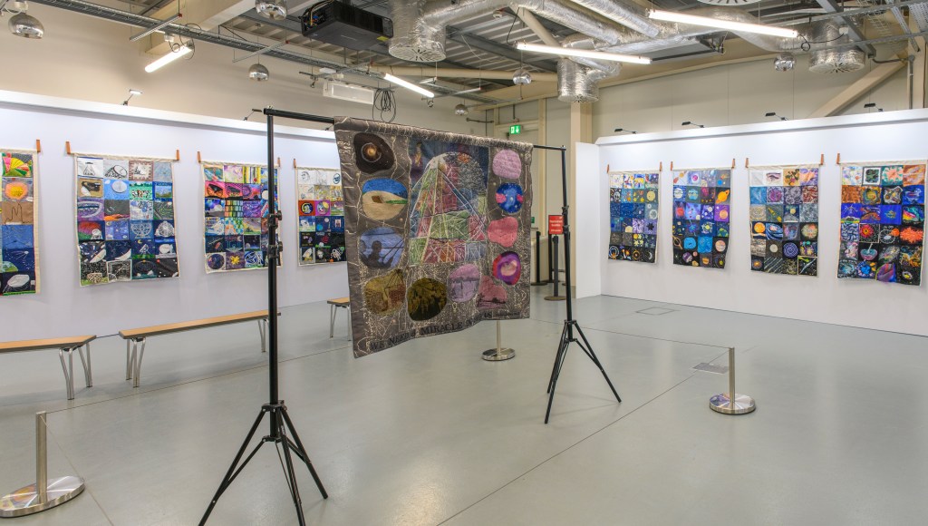 I am super excited to announce the commission and community collaboration ‘Cosmic Threads’ between myself and Jodrell Bank – a UNESCO World Heritage Site and Britain’s largest radio telescope. Many thanks to their outreach team and the 240+ contributors to our project, which opens to the public on January 24th, 2026, and is on until the end of March. Admission includes a ticket to see it and there is a catalogue available.