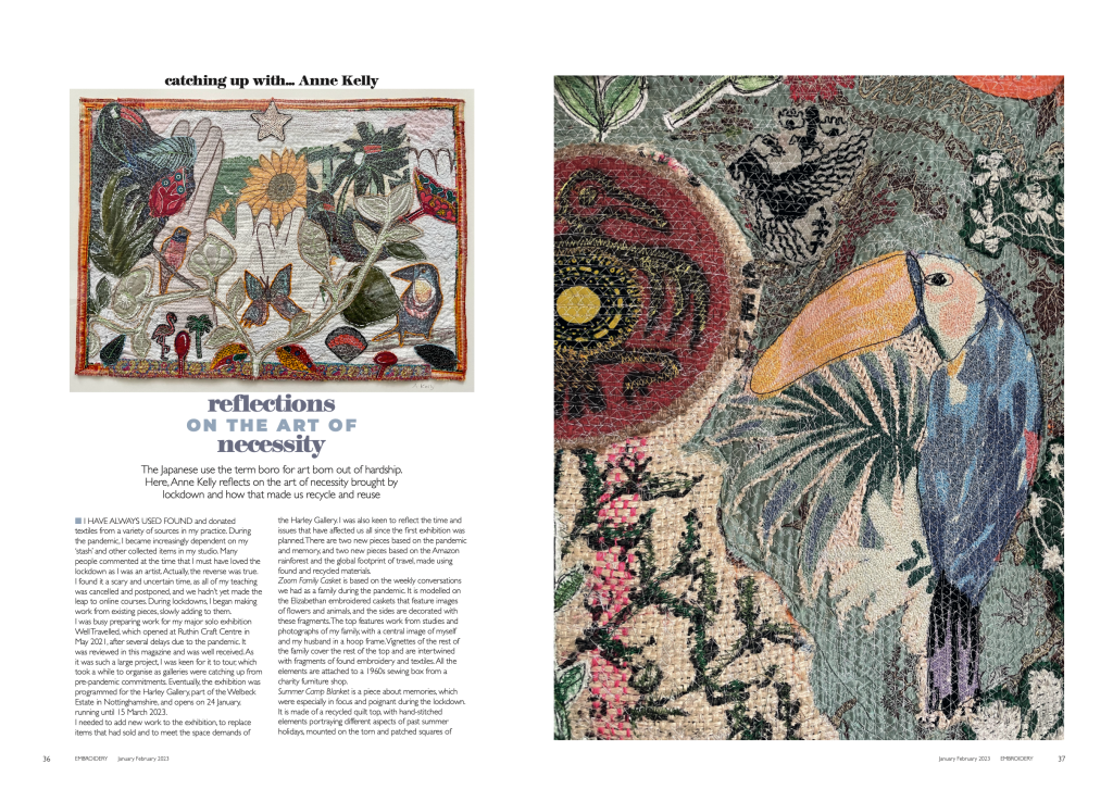 January 2023 edition of ‘Embroidery’ magazine ‘Reflections on the Art of Necessity’ about the work for my Harley Gallery exhibition.